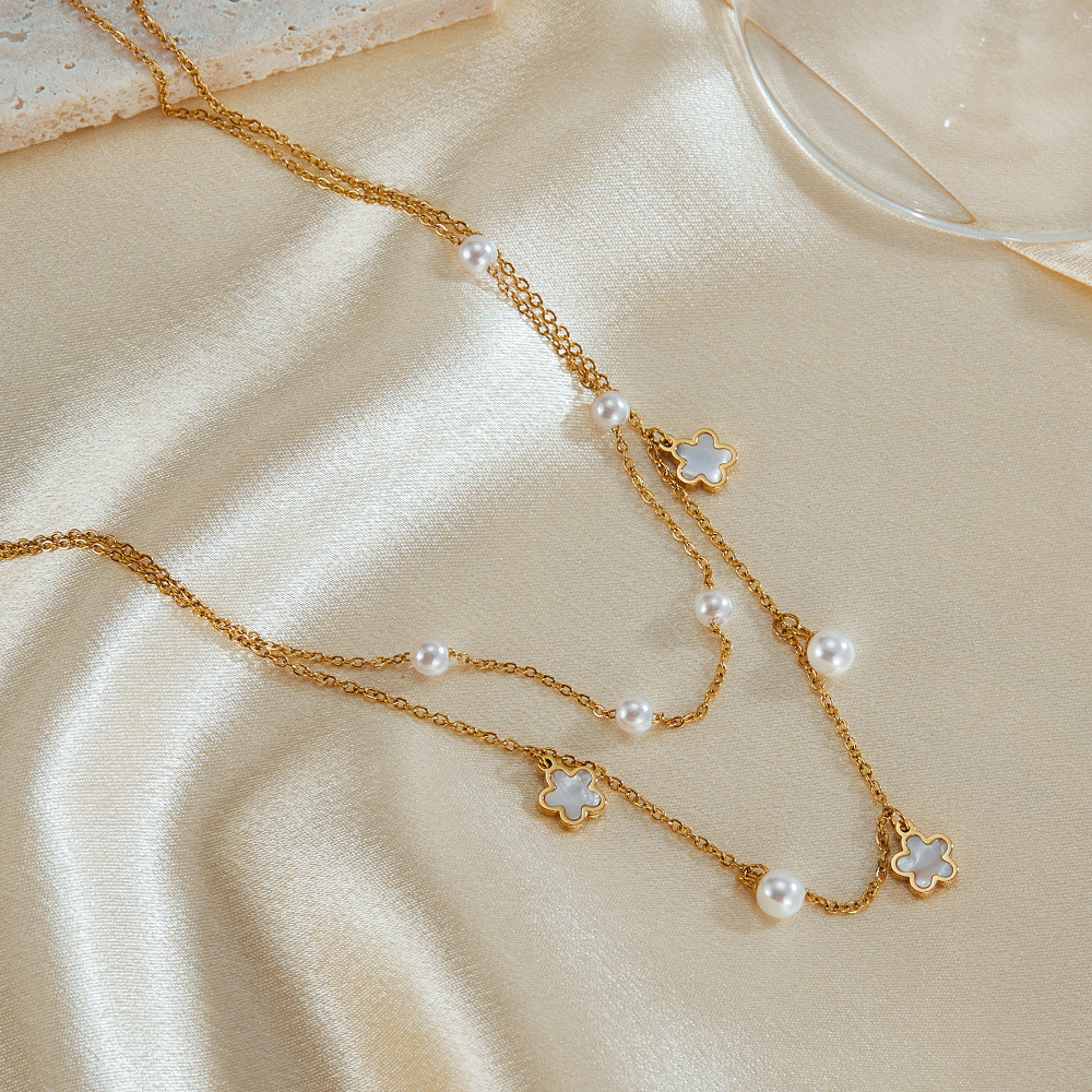 Double-layered Flower and Pearl Clavicle Chain, Versatile for Any Outfit Item Number:YKD2456N