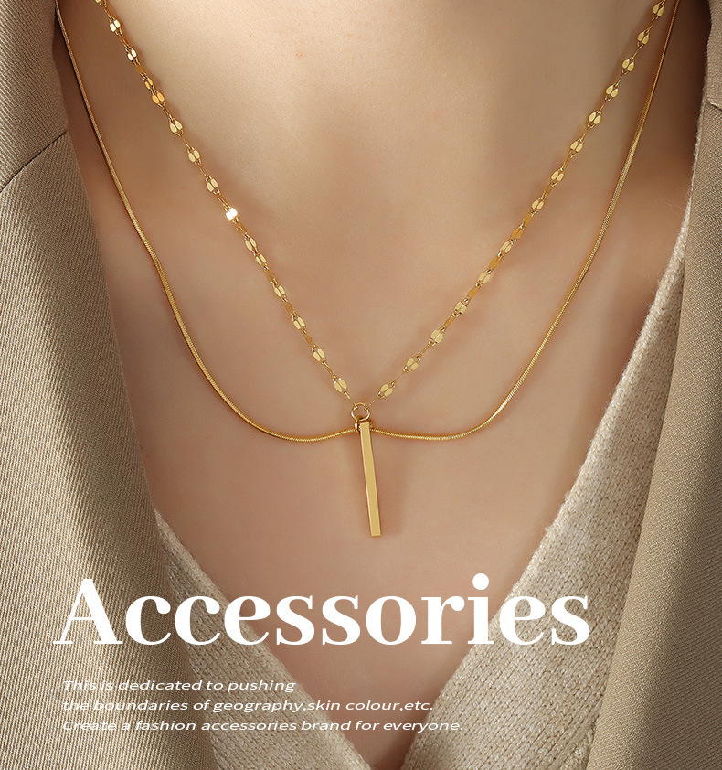 Rectangular multi - layer stackable titanium steel necklace Item Number:YKD-P803