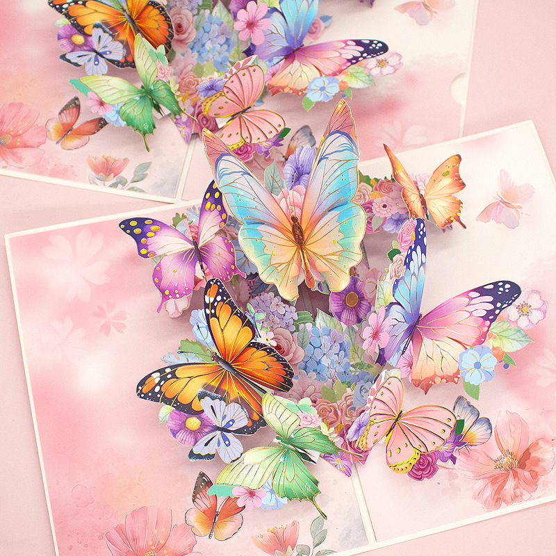 Made from top-notch materials, our pop-up cards blend beauty with durability. Their sturdy build ensures the intricate pop-up mechanism works flawlessly, letting you relive the magic of fluttering butterflies time and again. Ideal for collectors and craftsmanship enthusiasts.