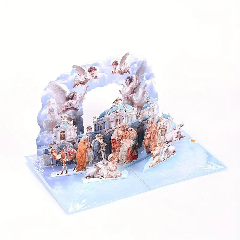 Custom 3D Pop-Up Christmas Card - Personalized Manger Nativity