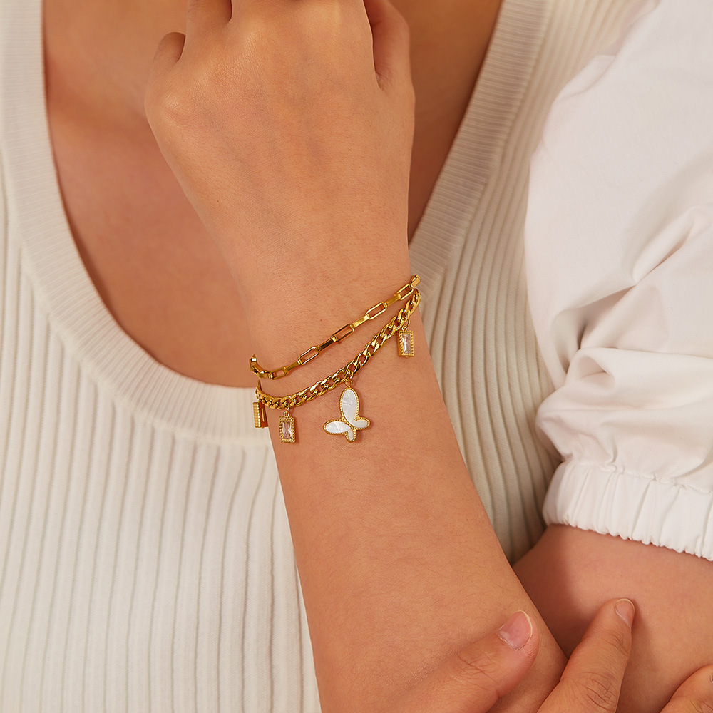 Fashionable Hollowed-out Mother-of-Pearl Stainless Steel Bracelet Item Number:YKD1488B